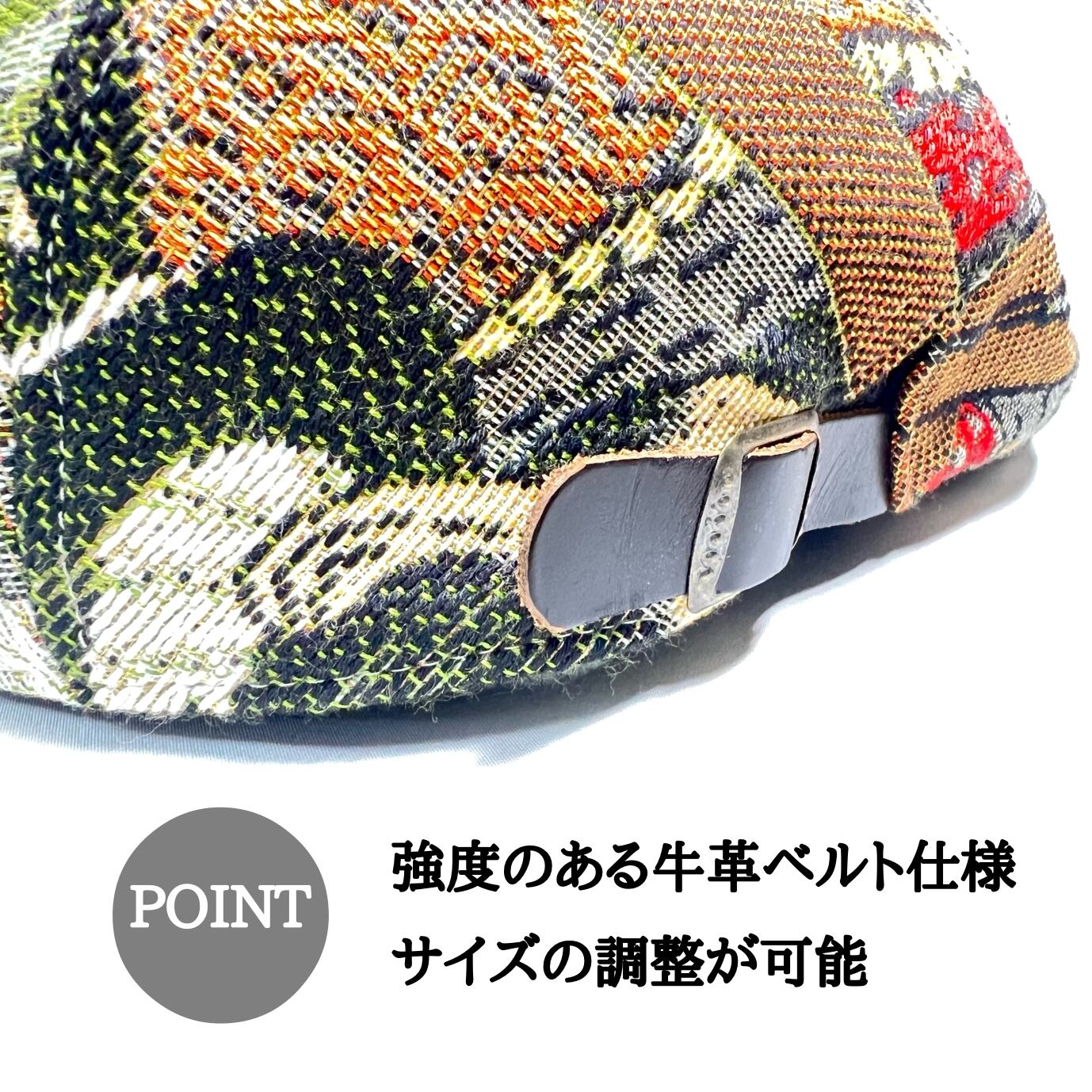 高級感あふれるゴブラン織をもちいて昔ならではのサイドベルト付のハンチングを作成いたしました。一つ一つ裁断をし縫製をこなっており、躍動感のある柄の向きにも注目。 ゴブラン織りとは15世紀の中頃にフランスのジャン=ゴブランが創始した織物の一種です。7色以上を用いて多色表現ができる点が特長。●実店舗との共有在庫につき、売り違いの際はご了承ください。●お使いのディスプレイにより実物と多少色が異なる場合があります。