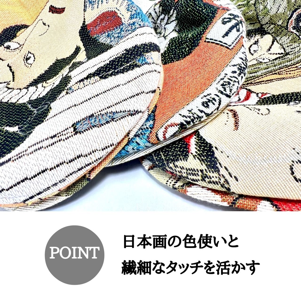 高級感あふれるゴブラン織をもちいて昔ならではのサイドベルト付のハンチングを作成いたしました。一つ一つ裁断をし縫製をこなっており、躍動感のある柄の向きにも注目。 ゴブラン織りとは15世紀の中頃にフランスのジャン=ゴブランが創始した織物の一種です。7色以上を用いて多色表現ができる点が特長。●実店舗との共有在庫につき、売り違いの際はご了承ください。●お使いのディスプレイにより実物と多少色が異なる場合があります。