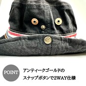 ツバ先にワイヤーが入っており、自由自在。サイドのスナップボタンでテンガロン風にも早変わり。