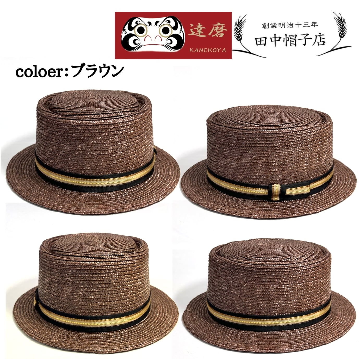 191300-1-BR 田中帽子店 麦わら帽子 メンズ おしゃれ 父の日 ギフト 金古屋 達磨 限定商品 7MMポーク 紳士 HAT 麦わら 帽子 天然草木 日本製 サイズ調整可能 ブラウン