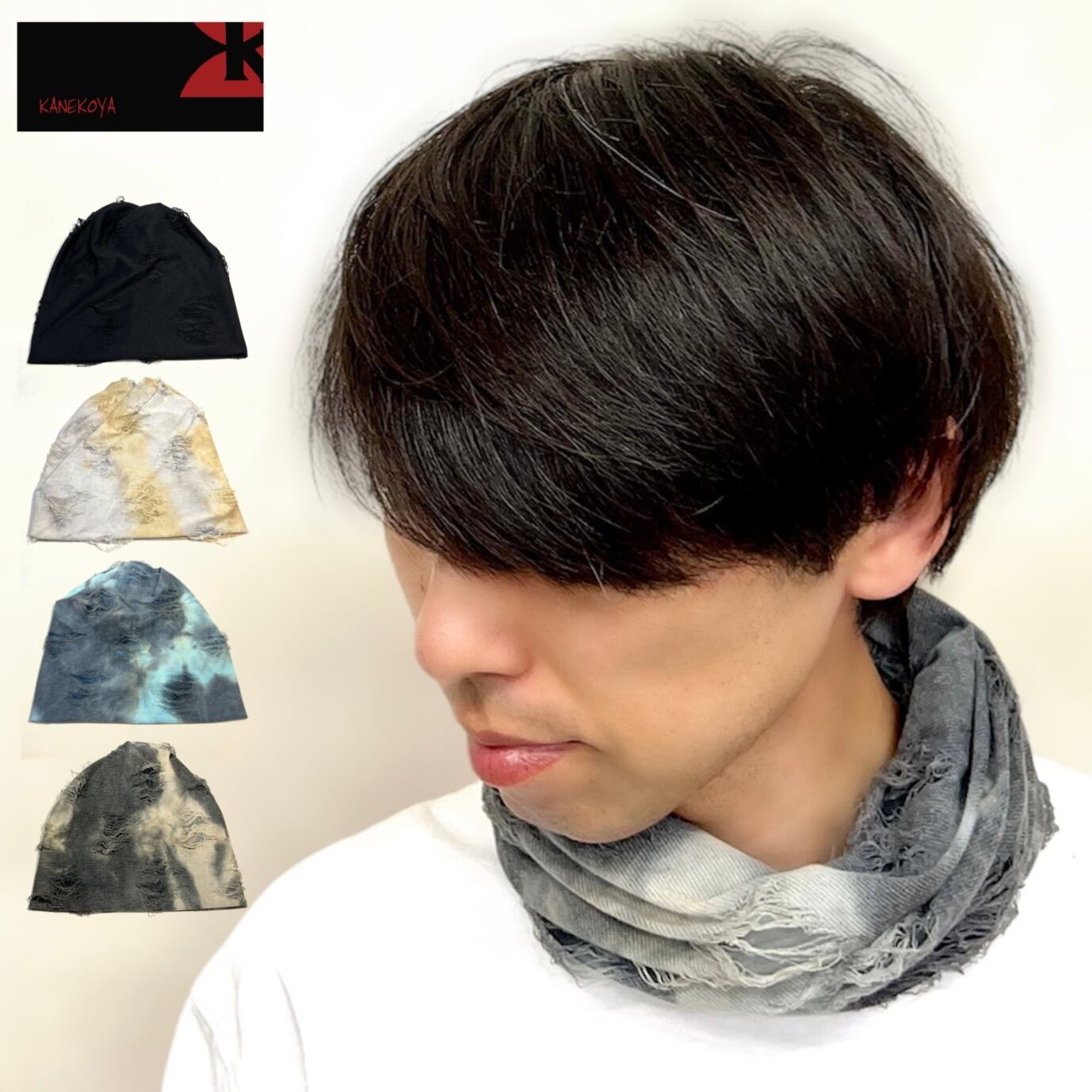 ニット帽 レディース メンズ 90代 80代 70代 60代 50代 40代 おしゃれ 医療 通院 室内 ワッチ 穴あき 2WAY ビーニー【メール便対応】金古屋 ダメージ3WAY Y-311