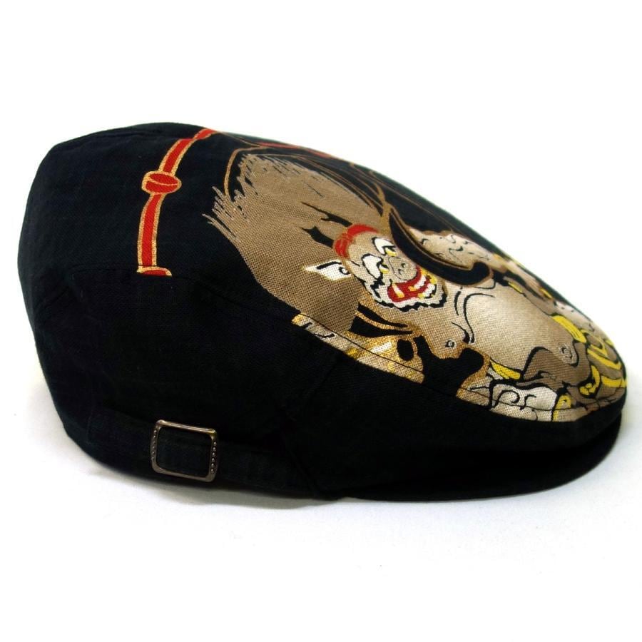 インパクトのある生地は職人が1枚1枚手作業で染め上げ、力強い雷神様がバランス良く配置されるよう、熟練された帽子職人が