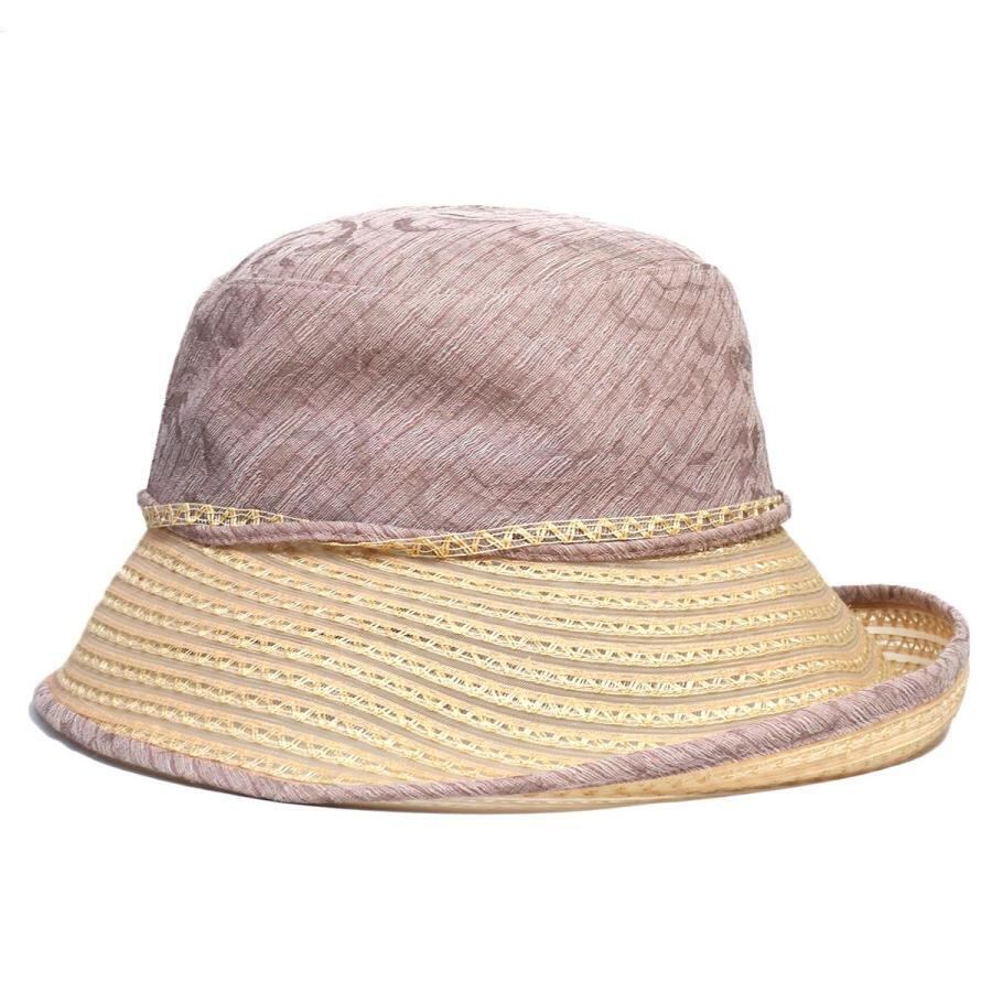 特徴的なツバ部分ベージュのブレード部分が一つ一つ編み込んだ様な柄になっており、透け感のある素材が涼しげで優しい印象です。