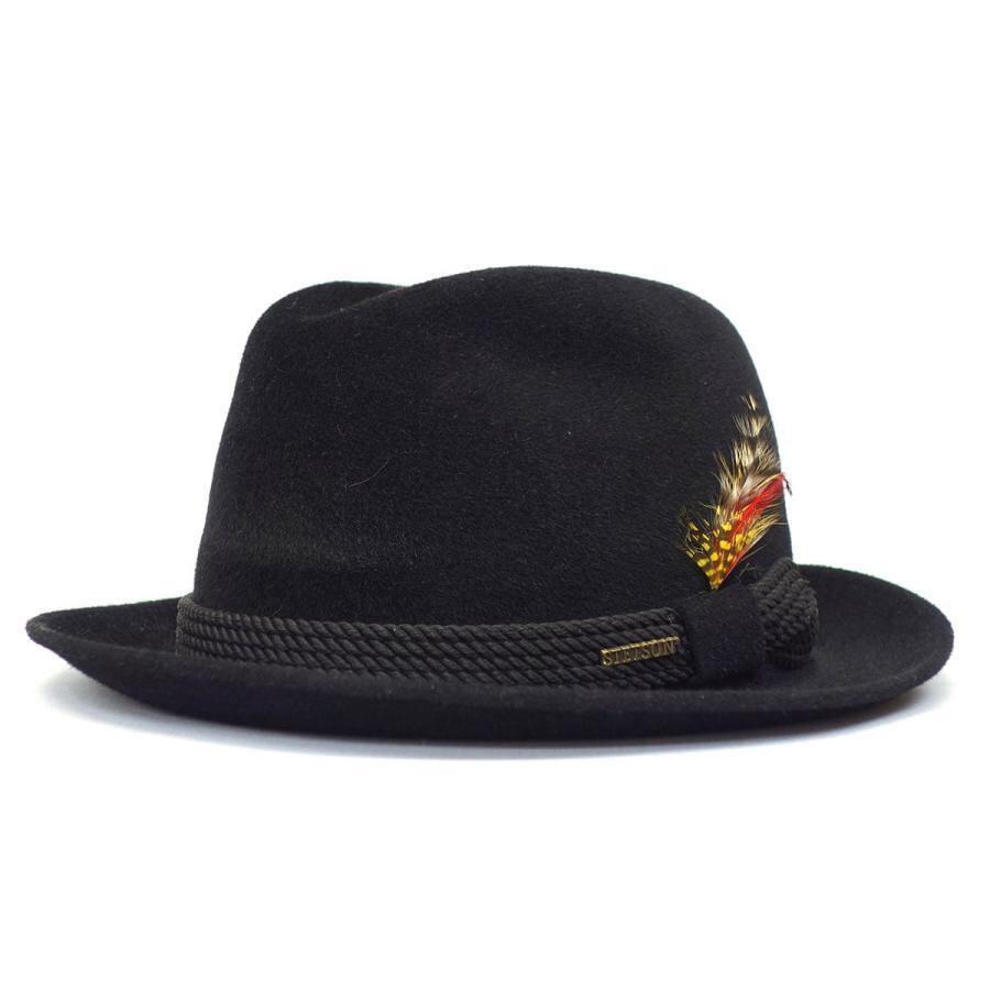 STETSON STETSON522 アメリカ製 小さいサイズ 敬老の日 紳士 高級帽子 帽子 中折 ナカオレ ハット ファーフェルト プレゼント ブラック系