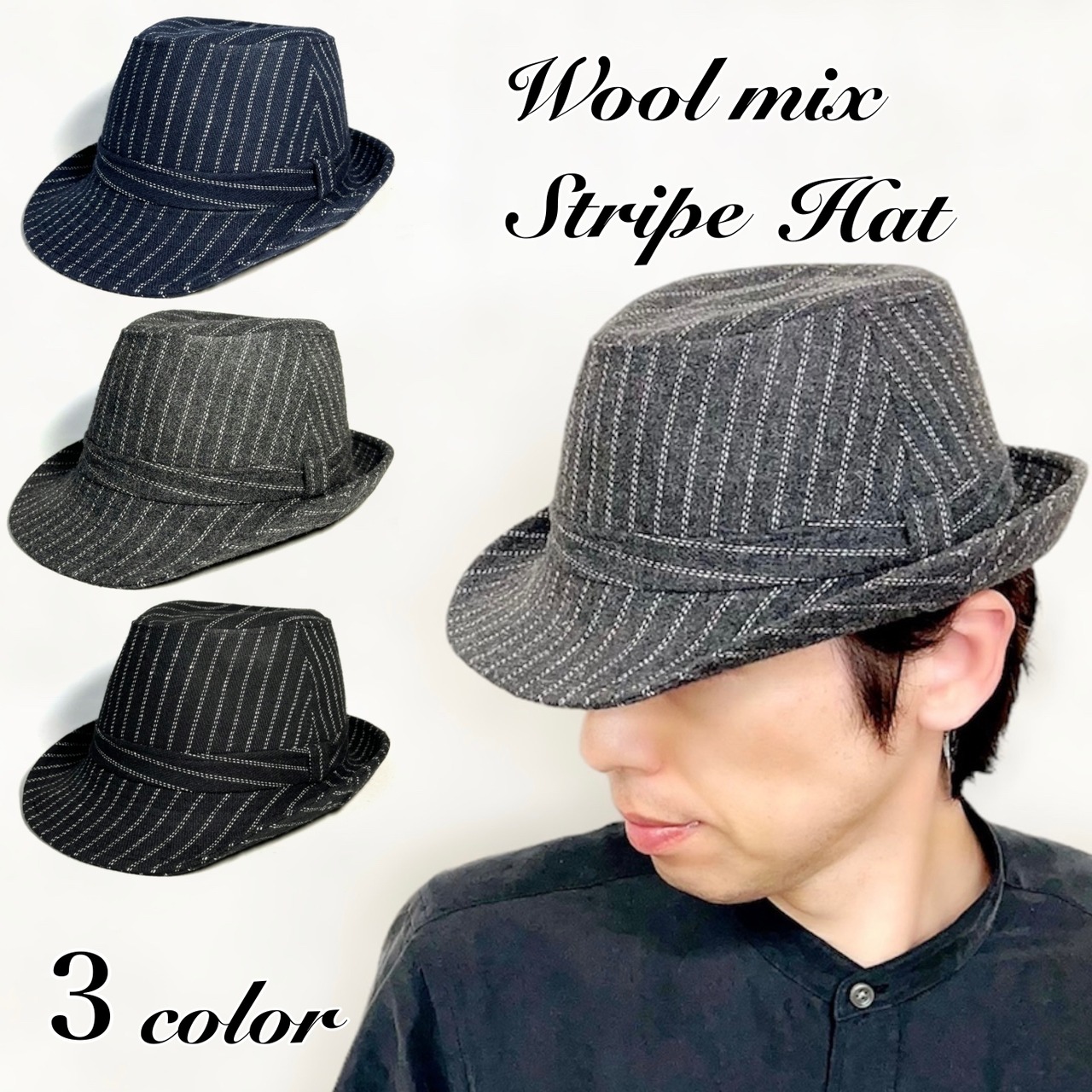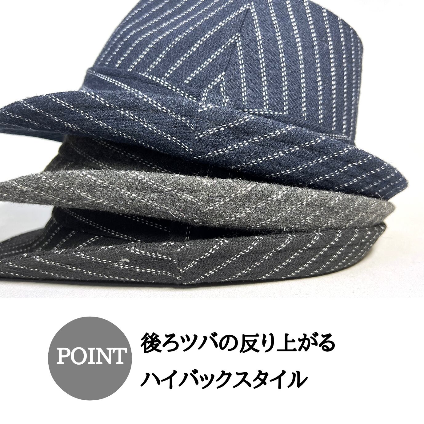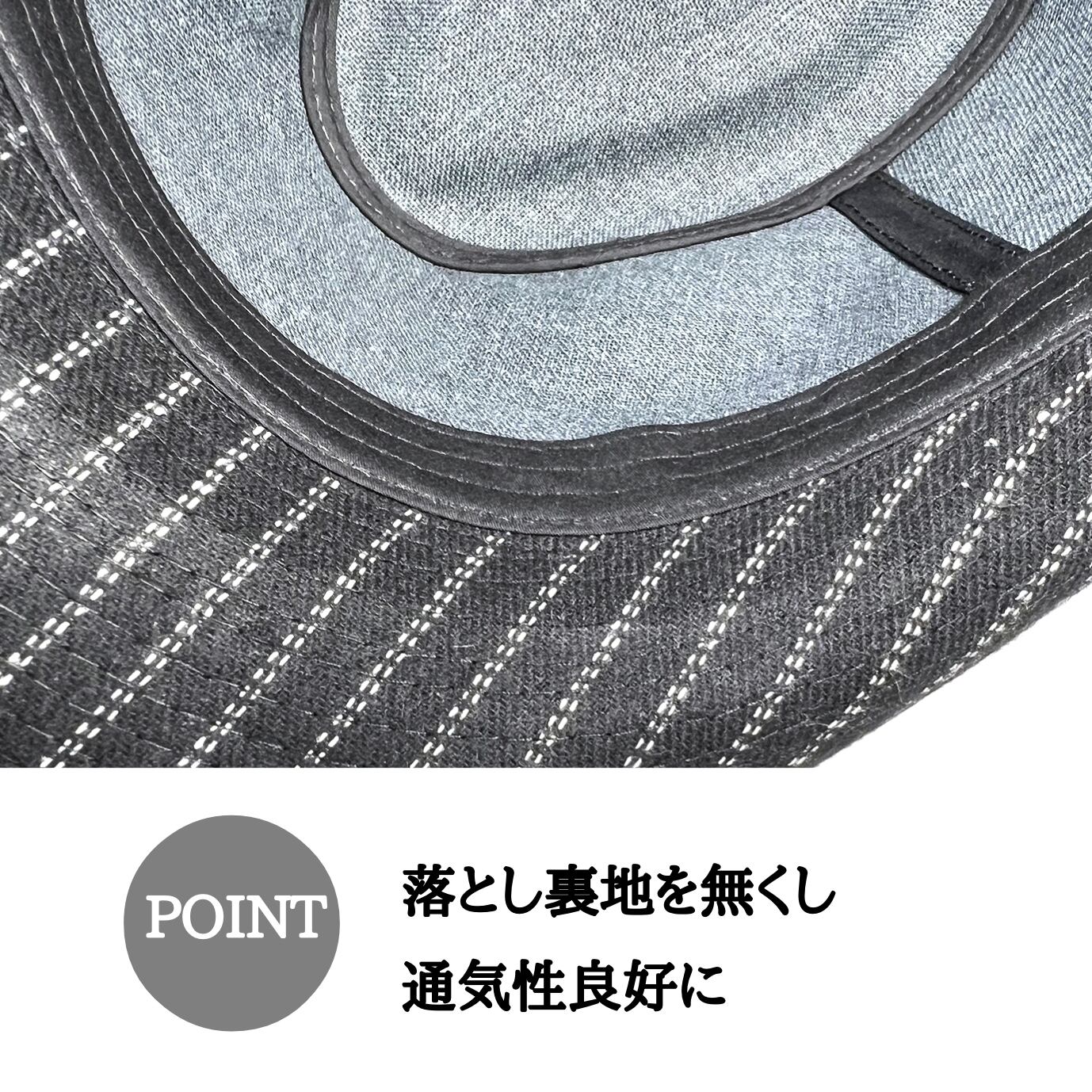 前つばの下がったクールなシルエットは男性ハットの定番シルエット。落とし裏地の無い軽い仕上がり。