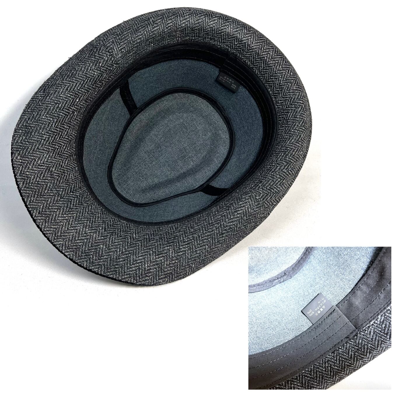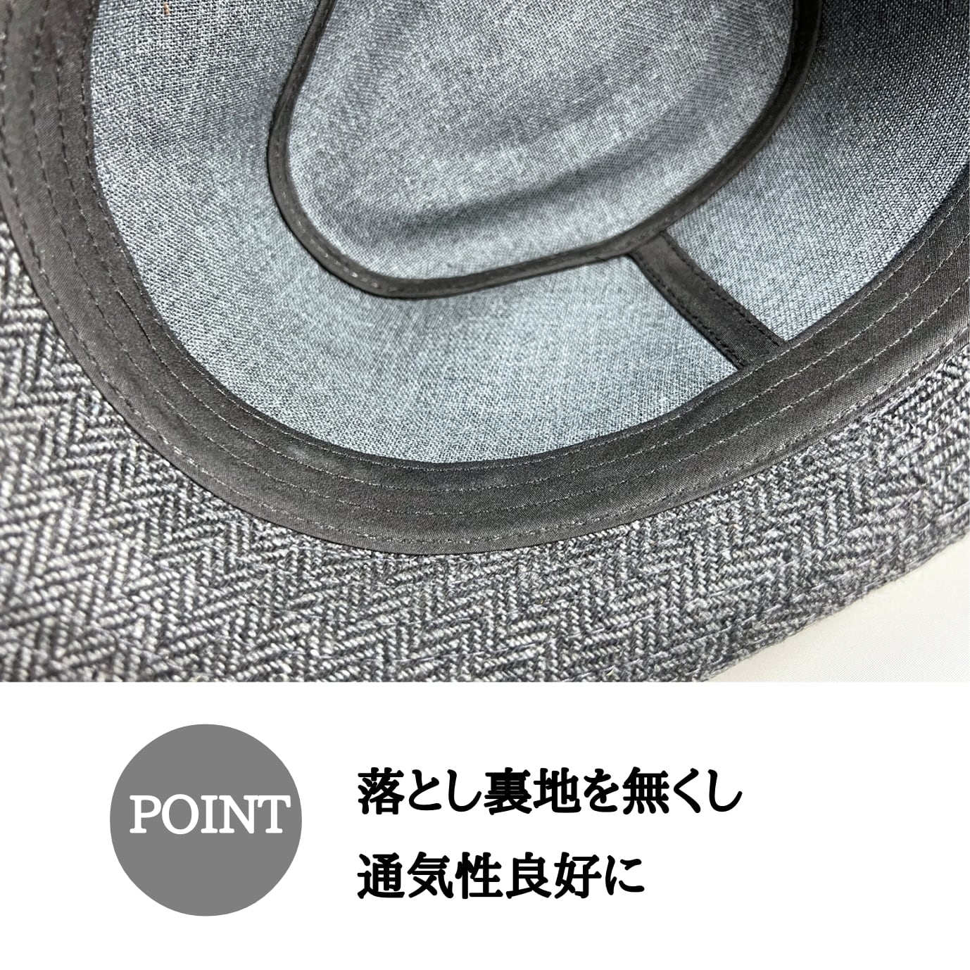 前つばの下がったクールなシルエットは男性ハットの定番シルエット。落とし裏地の無い軽い仕上がり。
