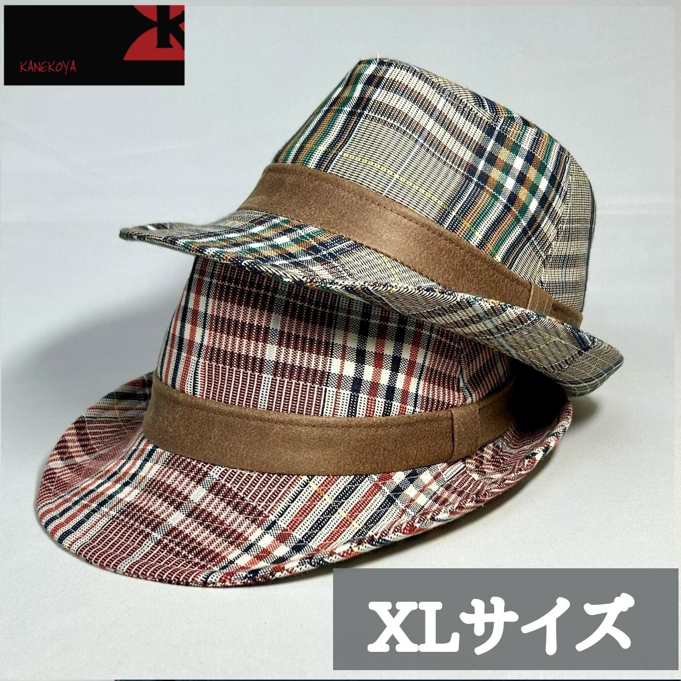 M-N242XL大きいサイズ 中折ハット メンズ おしゃれ 40代 50代 60代 チェックナカオレ BIG 帽子 紳士 シニア HAT ギフト ゴルフ 金古屋
